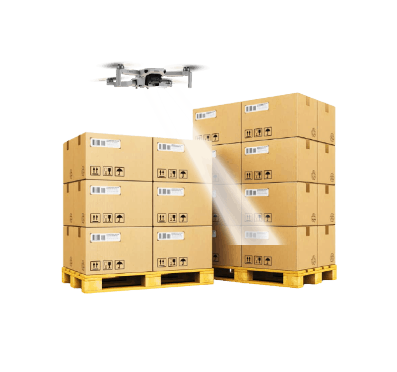 Upon the drones’ arrival at each level/bin, the front-facing barcodes are scanned and data is compared against Warehouse management system records. In case only a count is required, a number of count of items is provided.